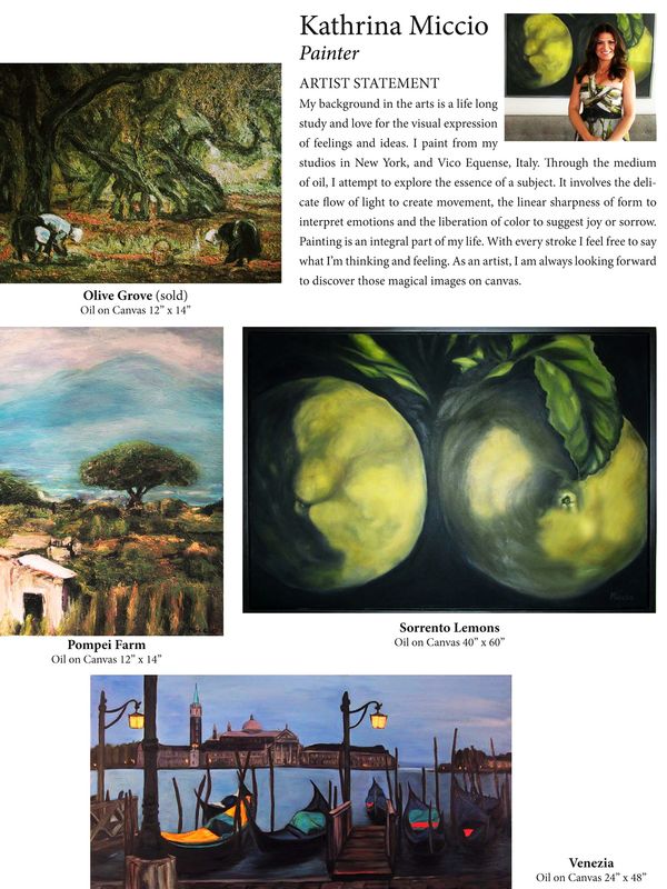 is a painter, native New Yorker, and part time resident of Vico Equense, Italy. Miccio’s background in the arts is a life long study and love for the visual expression.